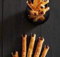 Doel: mooie, knapperige vingers als Halloween-snack. Amandelnagels geven een realistischer beeld hahaha